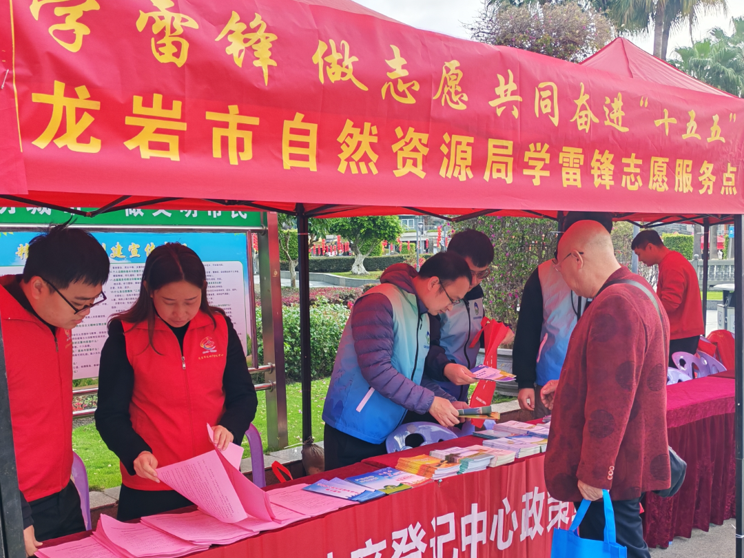 龙岩市自然资源局志愿者们化身“政策宣讲员”,围绕群众关心的耕地保护、土地节约集约利用、不动产登记流程、地质灾害防治等内容开展科普宣传。