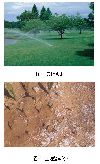 2、农业灌溉主要是指对农业耕作区进行的灌溉作业。不合理的灌溉会导致土壤的盐碱化,即含盐碱较多的地下水水位变化,同时随着地表蒸发,盐分在土壤中逐渐积累而形成的土壤退化现象。
