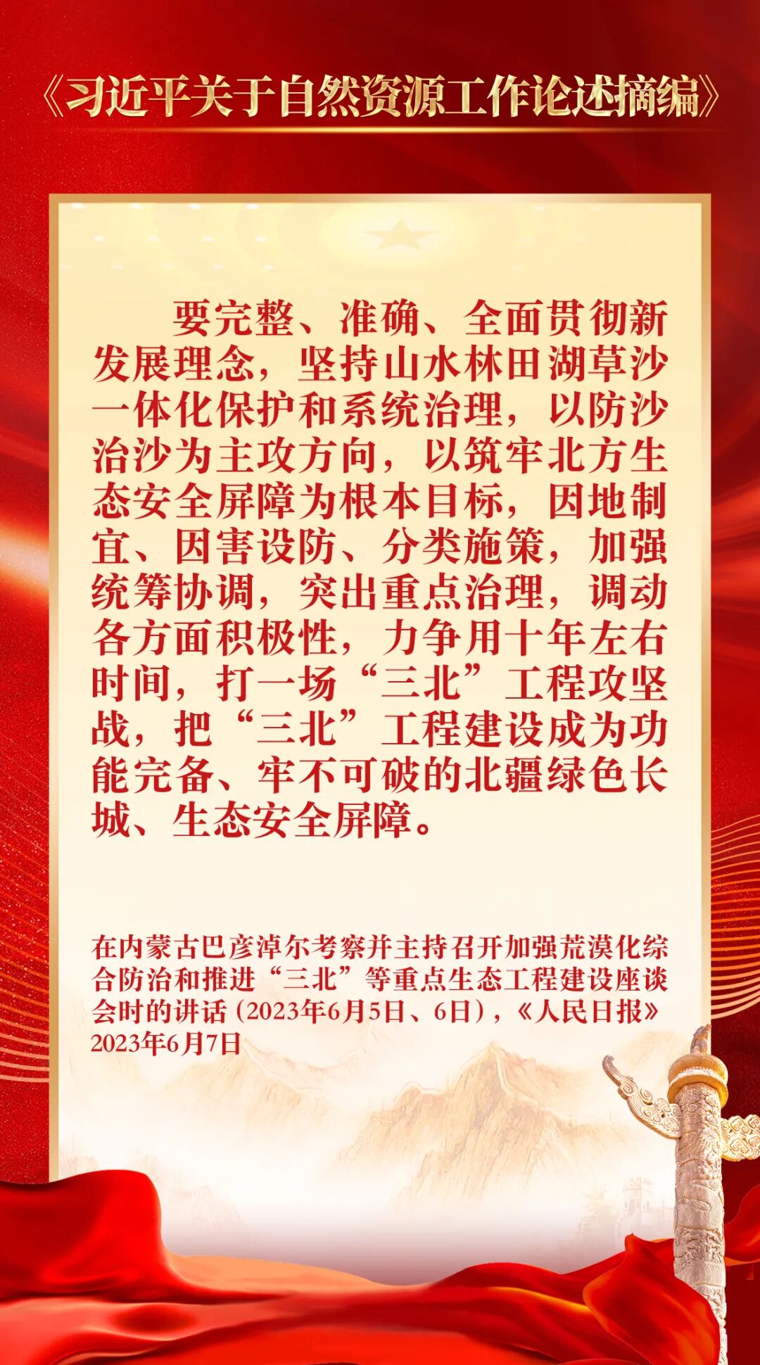 每日晨读|《习近平关于自然资源工作论述摘编》:在内蒙古巴彦淖尔考察并主持召开加强荒漠化综合防治和推进“三北”等重点生态工程建设座谈会时的讲话