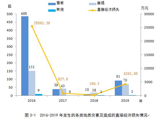 2019年,全省投入防治资金26654万元,地质灾害工程治理项目63个,搬迁受地质灾害威胁群众2940人。