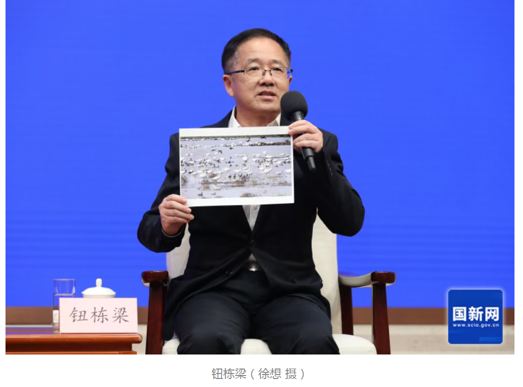 顶端新闻记者:我想提问给钮栋梁代表。您被大家称为“东滩老黄牛”,请问在崇明东滩这个候鸟迁徙关键栖息地,生态环境修复项目实施后生态环境明显改善,鸟类种群数量也显著增加,您能否用一两个数据或物种变化,讲讲修复前后最让您欣慰的生态转变?谢谢。