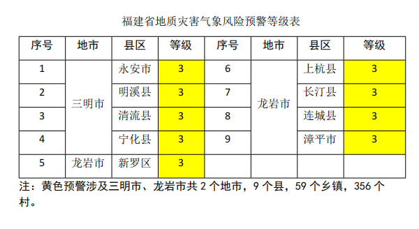 根据地灾气象风险预警信息,省自然资源厅、省气象局联合发布地灾预报预警结果。